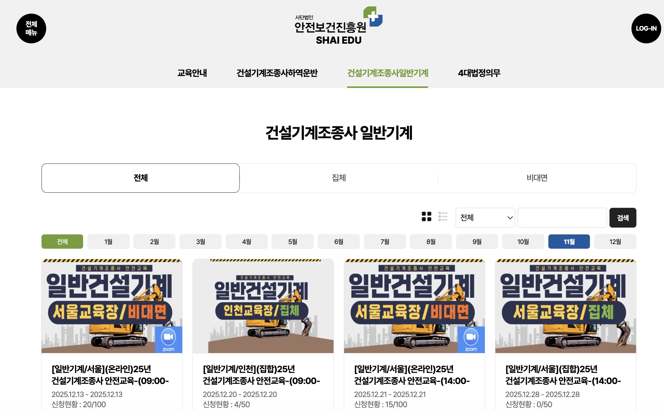 사업장 안전관리자, 근로자, 산업보건 관계자 등이 필수로 이수해야 하는 법정 의무교육부터 심화 과정까지 폭넓은 교육 프로그램을 제공합니다.